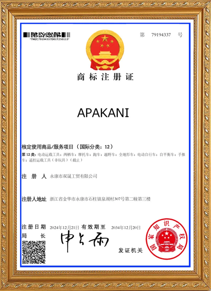 تأسست شركة APAKANI في عام 2007، وهي مؤسسة موجهة للتصدير ومتخصصة في تصنيع المركبات الصالحة لجميع التضاريس (ATV). تمتلك الشركة مصنعاً تزيد مساحته عن 20,000 متر مربع، وتضم فريق عمل يتجاوز عدده 200 موظف وعامل، بمن فيهم حوالي 20 موظفاً إدارياً. كما تمتلك الشركة ورش عمل خاصة بها للتشغيل الآلي، ولحام الهياكل، وإنتاج المحركات، والتجميع، والتغليف، بالإضافة إلى نظام متكامل للاختبار والفحص. وقد تم تجهيز ورشة التجميع بثلاثة خطوط إنتاج شبه آلية. وتبلغ طاقتنا الإنتاجية أربع حاويات شحن عالية الارتفاع (40HC) يومياً.
